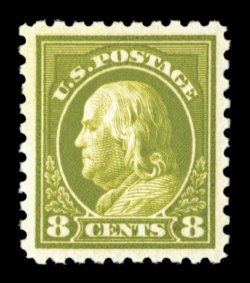 583 nhu 470 image#470, 8c Olive green, an especially desirable mint example, being flawlessly centered within uncharacteristically large and well balanced margins, gorgeous fresh color, immaculate o.g., n.h., an extremely fine gem for the perfectionist; 2006 PSE certificate (XF-Superb 95; SMQ $1,350.00). (Image) $130.00
