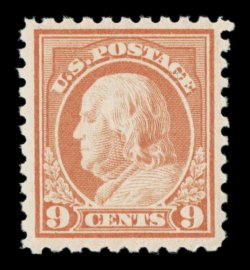 584 nhu 471 image#471, 9c Salmon red, well centered within large margins, bright fresh color, o.g., n.h., choice very fine; 2005 PSE certificate (VF-XF 85; SMQ $270.00). (Image) $130.00