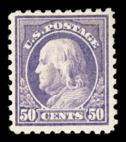 589 og 477 image#477, 50c Light violet, strong rich color on bright white paper, nicely centered within large margins, o.g., lightly hinged, very fine; 1985 PF certificate. (Image) $1,100.00
