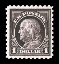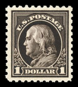 590 nhu 478 image#478, $1.00 Violet black, a highly desirable mint single, being wonderfully well centered within large margins, lovely rich color and a razor-sharp impression on clean white paper, pristine o.g., n.h., extremely fine; a very scarce stamp to find in premium never hinged condition; 2006 PSE certificate (XF 90; SMQ $4,450.00). (Image) $1,800.00