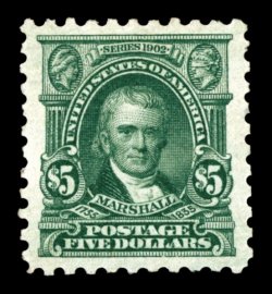 595 og 480 image#480, $5.00 Light green, excellent centering within wide margins, unusually bright color and a clean impression, o.g., lightly hinged, extremely fine; 2005 PF certificate. (Image) $220.00
