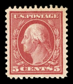 616 og 505 image#505, 5c Rose error, extraordinarily well centered within especially large margins, strong vibrant color and a crisp impression, o.g., lightly hinged, extremely fine; 1985 PF certificate. (Image) $350.00