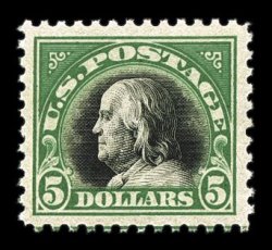 641 ogu 524 image#524, $5.00 Deep green and black, extraordinarily well centered and margined, strong color, o.g., very lightly hinged, extremely fine; 2006 PSE certificate (XF 90; SMQ $285.00). (Image) $200.00