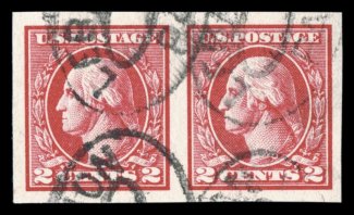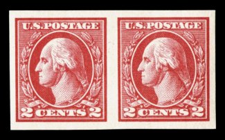 651 nh 533 image#533, 2c Carmine offset imperforate, Ty. V, pristine mint pair with beautiful radiant color and a sharp impression on clean white paper, o.g., n.h., extremely fine; 2004 PSE certificate. (Image) $490.00