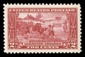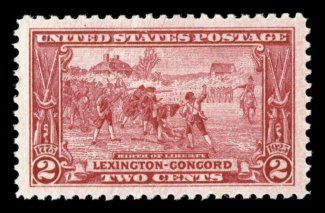 701 nhu 618 image#618, 2c Lexington-Concord, a spectacular mint single, possessing not only impeccable centering within enormously large margins, but its color is incredibly deep and vibrant, while its impression is remarkably detailed, pristine o.g., n.h., extremely fine; a fabulous gem; 2005 PSE certificate (Superb 98 Jumbo; SMQ $265.00 for 98). (Image) $8.00