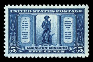 703 nh 619 image#619, 5c Lexington-Concord, precisely centered within lavishly large and wonderfully balanced margins, intensely rich color and a strong impression, o.g., n.h., an extremely fine gem. (Image) $32.50