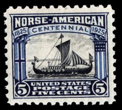 706 nh 621 image#621, 5c Norse-American, gorgeous mint single being precisely centered within lavish large margins, deep colors and sharp impression, o.g., n.h., extremely fine; a select gem. (Image) $24.00