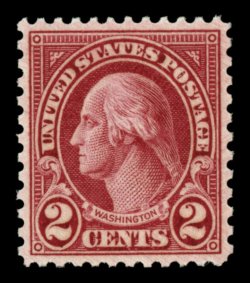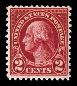 714 nhu 634A image#634A, 2c Carmine, Ty. II, magnificent mint single, being in a quality that is rarely encountered on this stamp, possessing precise centering amid especially wide margins, surrounded by full even perforations, in addition its color is a spectacular deep shade and its impression razor sharp, pristine o.g., n.h., extremely fine gem; a particularly rare stamp in this superb quality; 1984 and 1995 PF certificates, plus a 2006 PSE certificate (Superb 98; SMQ $6,500.00); Superb 98 is the highest grade yet assigned to the scarce #634A, this being one of only three that have been awarded this stellar status. (Image) $625.00