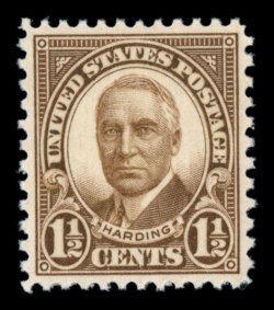 727 nhu 684 image#684, 1 1/2c Brown, flawless mint single, precisely centered, bright fresh color, o.g., n.h., superb; 2006 PSE certificate (Gem 100; SMQ $135.00 for 98; unpriced in this grade); one of only two to receive this impressive grade, the highest grade to date. (Image) $0.50