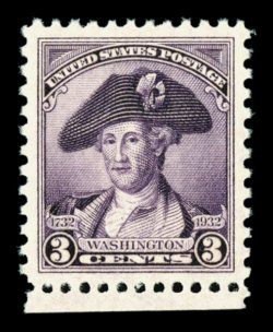 735 nhu 708 image#708, 3c Washington Bicentennial, bottom sheet-margin single, exceedingly well centered within large margins, deep intense color and impression, o.g., n.h., extremely fine gem; 2006 PSE certificate (Superb 98; SMQ $200.00); only one grades higher (98J). (Image) $0.80