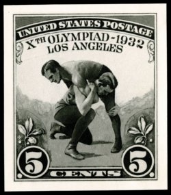 737 E 716, 718-19 image#716E, 718E-19-E, 1932 Third Winter Olympic Games and 1932 Tenth Olympic Games, official photographs of unissued wash essay designs for both the Winter and Summer Games, about 200% of actual stamp design, three different for the three values showing athletes participating in various events, two are similar to the issued designs but none are matching exactly, very fine and rare Olympic items; each accompanied by a 2005 PSE certificate. (Image) Est. 500-750