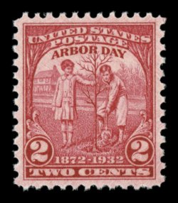 738 nhu 717 image#717, 2c Arbor day, outstanding centering, deep vibrant color and an intense impression, o.g., n.h., extremely fine; 2006 PSE certificate (Superb 98); only one stamp grades higher (98J). (Image) $0.20