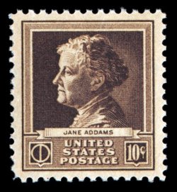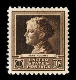 804 nhu 878 image#878, 10c Jane Addams, gem single that is extraordinarily well centered and margined, deep rich color, o.g., n.h., extremely fine; 2005 PSE certificate (Superb 98; SMQ $200.00). (Image) $1.10