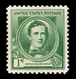 806 nhu 879 image#879, 1c Stephen Collins Foster, exceedingly well centered, brilliant color, o.g., n.h., extremely fine gem; encapsulated PSE certificate (Superb 98; SMQ $180.00). (Image) $0.20