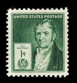 814 nhu 889 image#889, 1c Eli Whitney, uncommonly large and perfectly balanced margins all around, intensely rich color, o.g., n.h., extremely fine; a wide-margined gem; 2006 PSE certificate (Superb 98; SMQ $180.00). (Image) $0.20
