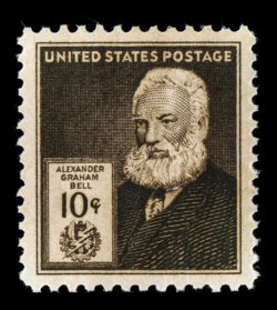 818 nhu 893 image#893, 10c Alexander Graham Bell, perfectly centered within lavishly large margins, sumptuously rich color, o.g., n.h., extremely fine; a gem example of the key value to the Famous American series; 2005 PSE certificate (Superb 98; SMQ $230.00). (Image) $11.00