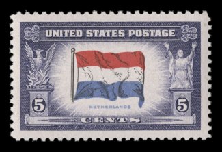 831 og/nh 909c/917a #909c/917a, 5c Overrun Nations, reverse printings, lot of eleven stamps, consisting of Poland, Czechoslovakia (two), Luxembourg, Netherlands, Belgium (two), France (two) and Yugoslavia (two), generally well centered, o.g., all but two n.h., very fine; one Czechoslovakia accompanied by a 2006 APS certificate; includes some normal printings for comparison. Est. 400-500