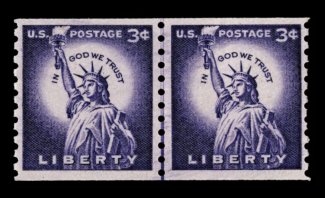 842 nh 1057d image#1057d, 3c Deep violet coil, small holes, Look magazine printing, joint line pair, well centered, brilliantly fresh, o.g., n.h., very fine; 2003 PF certificate. (Image) $250.00