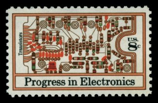 847 nh 1501b image#1501b, 8c Electronics, tan and lilac omitted, excellent centering, deep colors on immaculate paper, o.g., n.h., extremely fine; only one pane of fifty ever discovered. (Image) $1,100.00