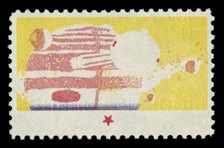 851 nh 1800b image#1800b, 15c Christmas, green, yellow and tan omitted, centered to the left and with other colors misaligned as is always the case on this error, exceedingly fresh, o.g., n.h., fine. (Image) for fine $550.00