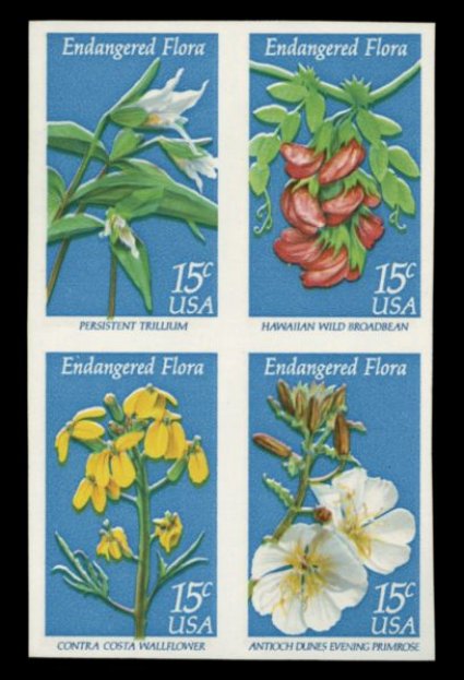 850 nhbl 1786b image#1786b, 15c Endangered Flora se-tenant block of four, imperforate, large margins all around, bright and fresh, o.g., n.h., extremely fine. (Image) $550.00