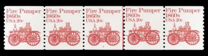 856 nh 1908 image#1908, 20c Fire pumper, plate no. 2 strip of five, bright and fresh, o.g., n.h., very fine; one of the scarcer plate number strips of the Transportation series; 2003 PF certificate. (Image) $750.00