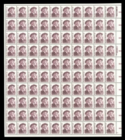 849 nhbl 1596d #1596d, 13c Eagle and shield, line perforated, full sheet of 100, fresh, o.g., n.h., very fine; cataloged as a plate block and 88 singles. $2,795.00+