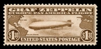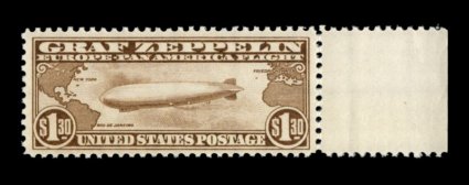 902 nh C14 image#C14, $1.30 Graf Zeppelin, right sheet-margin single, fresh and well centered, o.g., n.h., short gumming at right, very fine. (Image) $900.00