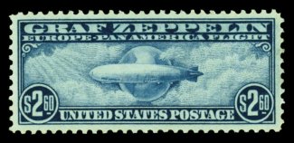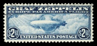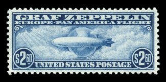 905 og C15 image#C15, $2.60 Graf Zeppelin, exceedingly well centered and margined, deeply rich color, o.g., lightly hinged, extremely fine; 2004 PF certificate. (Image) $775.00