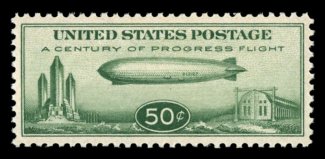914 nhu C18 image#C18, 50c Graf Zeppelin, gem mint example, possessing precise centering and uncharacteristically large margins, flawless o.g. without a single gum bend or skip, n.h., extremely fine; clearly not your typical quality #C18; 2004 PSE certificate (XF-Superb 95; SMQ $230.00). (Image) $100.00