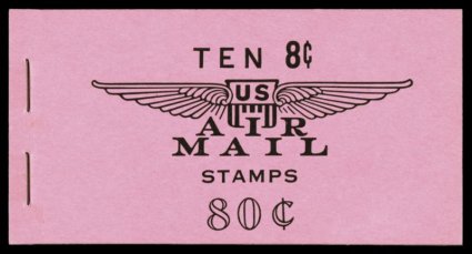 918 BK BKC17 image#BKC17, 80c Black on pink booklet of two panes of #C64c, an especially fresh and choice example of this scarce air post booklet, with clean uncreased covers and sharp corners, o.g., n.h., extremely fine; 2002 PSE certificate. (Image) $1,000.00