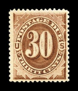 934 og J6 image#J6, 30c Brown, lovely rich color, uncommonly well centered and margined, full clean o.g. with just a faint trace of hinging, choice very fine; photocopy of a 1987 PF certificate for a block of four, this being the top right stamp, and a 2006 PF certificate as a single. (Image) $375.00