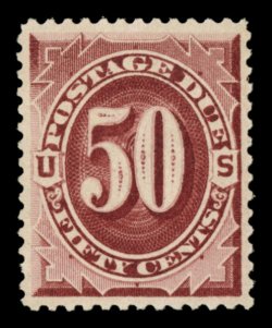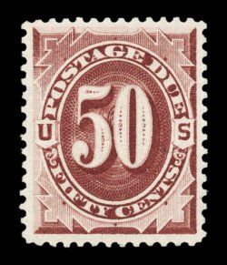 940 nhu J28 image#J28, 50c Bright claret, a most remarkable quality mint example of this scarce postage due, possessing numerous exceptional physical qualities that are seldom encountered, including being nearly perfectly centered within uncharacteristically large margins, plus its color and impression would rival any proof, pristine o.g., n.h., extremely fine in every regard; a truly rare stamp in this extraordinary premium never hinged condition; 2006 PSE certificate (XF 90; SMQ $3,700.00). (Image) for hinged $650.00