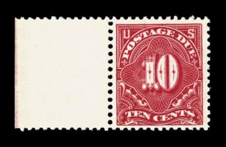 941 og J35 image#J35, 10c Deep claret, particularly well centered and margined, strong rich color and a well incised impression, o.g., lightly hinged, extremely fine; 1999 PF certificate. (Image) $325.00