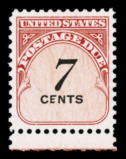 946 nh J95 var. image#J95 var., 7c Carmine rose, dull gum, handsome bottom sheet-margin single, remarkably well centered and exceptionally fresh, o.g., n.h., extremely fine; an unusually choice example of this scarce modern variety, which is surprisingly difficult to find well centered. (Image) $700.00