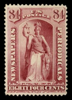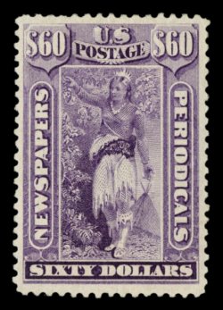 974 og PR79 image#PR79, $60.00 Purple, an attractive mint example of this scarce newspaper stamp, gorgeous rich color and a clean impression, uncharacteristically well centered within large margins, o.g., lightly hinged, extremely fine; 2002 PF certificate. (Image) $850.00