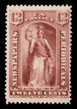 975 nh PR82 image#PR82, 12c Carmine, bright rich color, nicely centered within large margins at top and bottom, pristine o.g., never hinged, very fine; 2006 PF certificate. (Image) for hinged $165.00