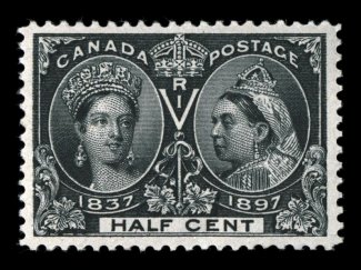 1108 nh 50 image#50, 1897 1/2c Jubilee, exceedingly well centered within uncommonly large margins, deep color and an intense impression on brilliantly white paper, o.g., n.h., extremely fine; 2005 Greene Foundation certificate (Unitrade C$450.00). (Image) $250.00