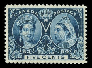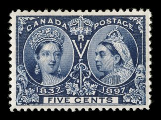 1113 nh 54 image#54, 1897 5c Jubilee, deep intense color and impression, excellent centering within wide margins, o.g., n.h., extremely fine; 2005 Gratton certificate (Unitrade C$225.00). (Image) $125.00