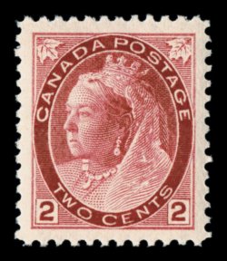1124 nh 77a image#77a, 1899 2c Carmine, Die II, "Numeral", select mint single, precise centering within enormously large margins, bright and fresh, o.g., n.h., extremely fine (Unitrade C$150.00). (Image) $50.00