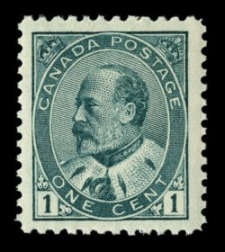 1123 nh 75 image#75, 1898 1c Gray green "Numeral", excellent centering within uncommonly large margins, deep rich color, o.g., n.h., extremely fine and exceedingly choice (Unitrade C$120.00). (Image) $45.00