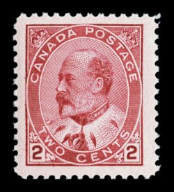 1126 nh Unitrade #90i imageUnitrade #90i, 1908 2c Carmine, Ty. II, jumbo mint single, with huge margins all around and being exceptionally well centered within these oversized borders, fresh color, o.g., n.h., extremely fine (Scott $50.00 for unspecified type). (Image) Unitrade C$120.00