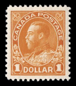 1136 nh 122 image#122, 1923 $1.00 Orange, dry printing, a gorgeous mint single which is magnificently well centered amid lavishly large and well balanced margins, radiant color and impression, pristine o.g., n.h., extremely fine gem; 1997 PF certificate (Unitrade C$375.00). (Image) $230.00