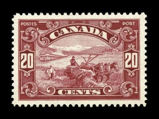 1137 nh 157 image#157, 1929 20c Harvesting Wheat, lavishly large and perfectly balanced margins all around, deep vibrant color, pristine o.g., n.h., a superb gem (Unitrade C$180.00). (Image) $100.00