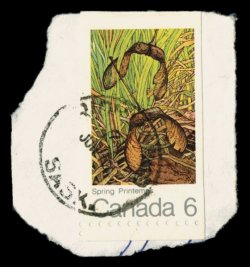 1140 O 535a var. image#535a var., 1971 6c Maple Leaf - Spring, imperforate on three sides, a large-margin single with comb perforations at bottom only, tied to small piece by Saskatchewan c.d.s. dated June 10, 1971, the location and period of the discovery of this imperforate error, very fine; 75 imperforate pairs of this stamp have been reported, these apparently came about because half of the press sheet of six panes of 25 had only half of the panes perforated, this partially perforated variety comes from the bottom row, the rest being entirely imperforate, this means there are many less of this variety than of the imperforate pair; the example offered here is the the only recorded used example; 2006 Greene Foundation certificate. (Image) Est. 400-500