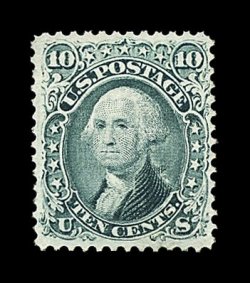 105 og 89 image#89, 10c Green, "E" grill, particularly well centered within large margins, rich luxuriant color in a deep "sage" green shade, strong impression as well, large part o.g. which is a bit redistributed, very fine; a very rare mint stamp that is missing in even the most advanced collections; 1979 and 2002 PF certificates; ex-Lessin. (Image) 5,500.00