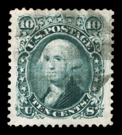 106 Ou 89 image#89, 10c Green, "E" grill, a spectacular used example that could very well be the finest used copy in existence, as this stamp possesses gigantic margins all around and is incredibly well centered within these immense borders, plus its color is deep and rich, while its impression is razor-sharp, light segmented cork cancel, a truly superb stamp; 1992 PF certificate and a 2004 PSE certificate (Superb 98 Jumbo; SMQ $2,750.00 for 98); this is by far the highest graded #89 in the PSE population report; ex-"Connoisseur" Collection, Morris. (Image) $325.00