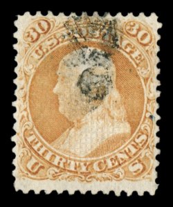 111 O 100 image#100, 30c Orange, "F" grill, lovely used single being well centered with bright strong color, lightly cancelled, and an especially strong and complete grill impression, choice very fine; 2006 PF certificate. (Image) $850.00