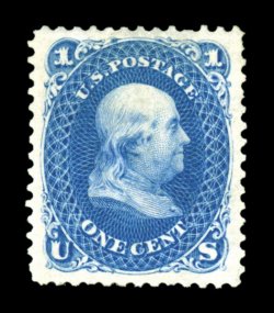 112 og 102 image#102, 1c Blue re-issue, select quality mint example, extraordinarily well centered within exceedingly large margins, wonderfully rich color and a well incised impression on brilliantly white paper, o.g., relatively lightly hinged, extremely fine; 1992 PF certificate. (Image) $950.00