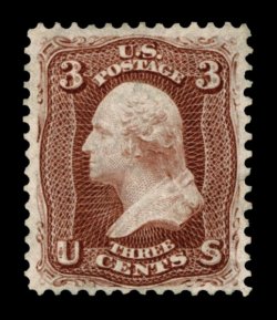 114 ng 104 image#104, 3c Brown red re-issue, unused, well centered and margined, rich fresh characteristic color, two small closed tears, very fine appearance; only 465 sold. (Image) $2,500.00